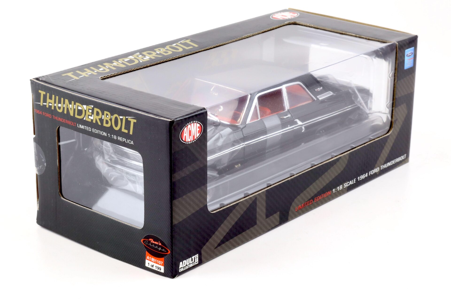 1:18 ACME 1964 Ford Fairlane 500 Thunderbolt NHRA TOMS GARAGE black/ red