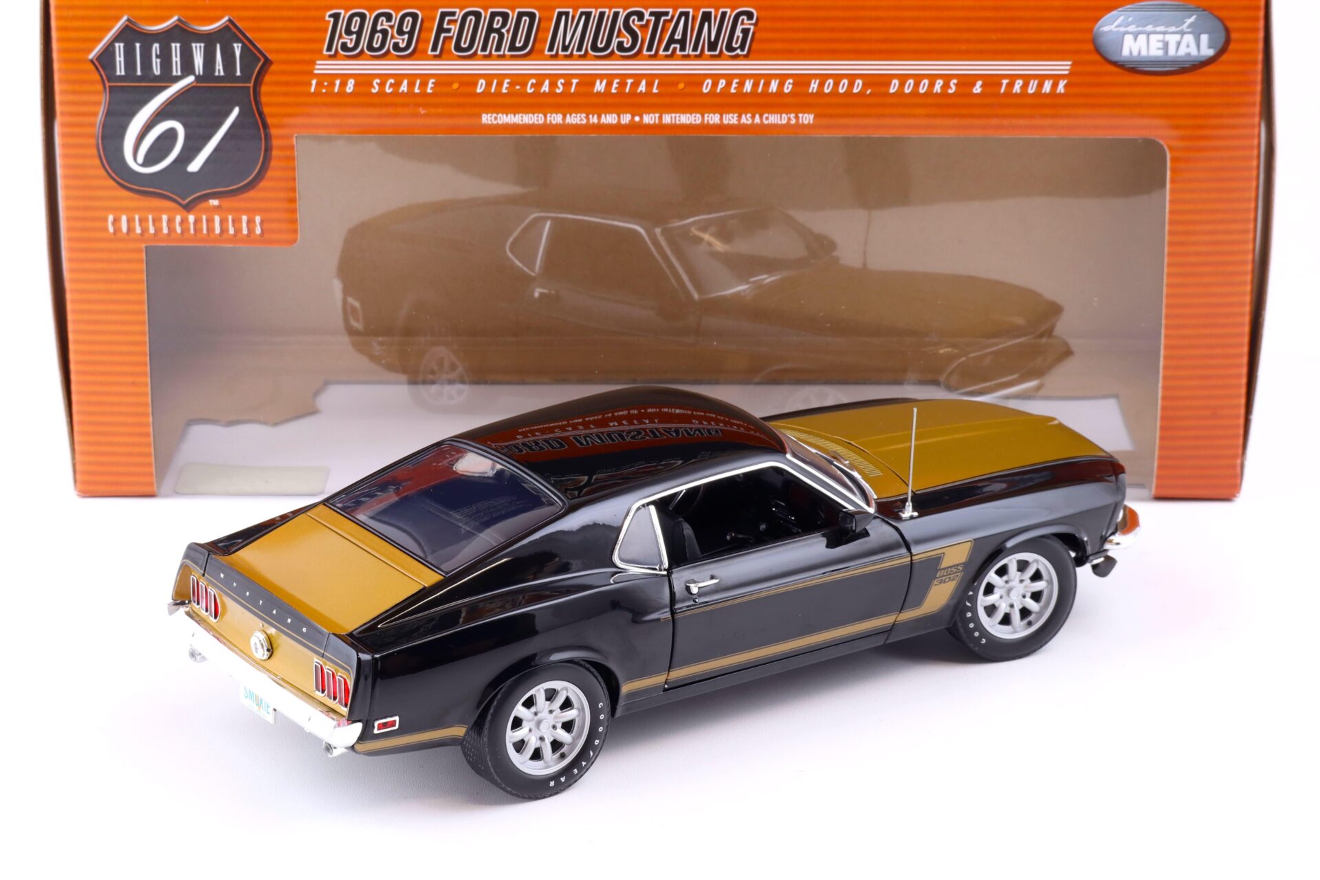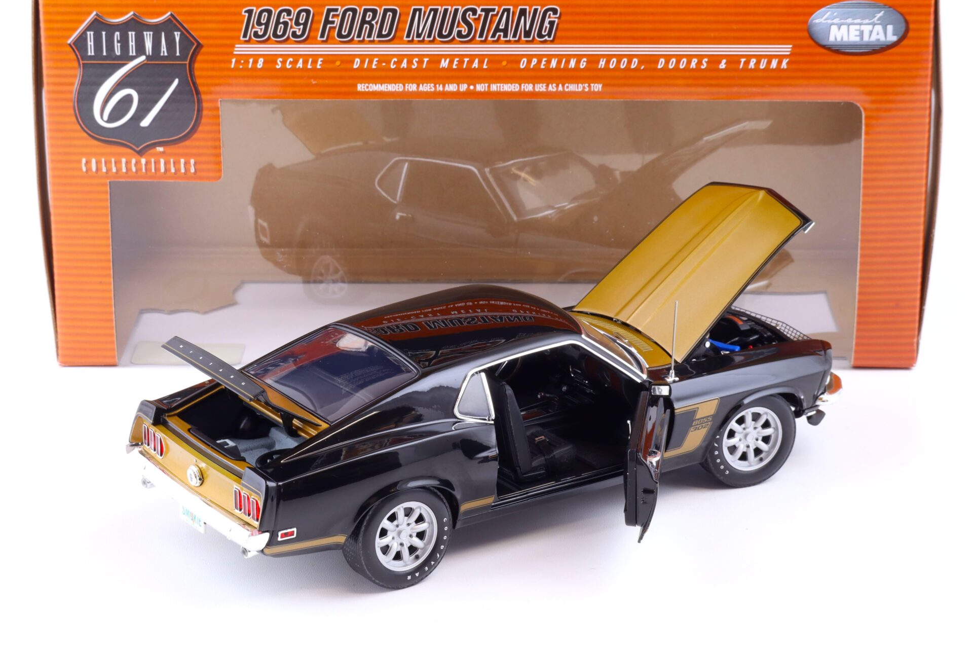 1:18 Highway61 Ford Mustang Boss 302 Coupe Smokey Tribute black/ gold 50730