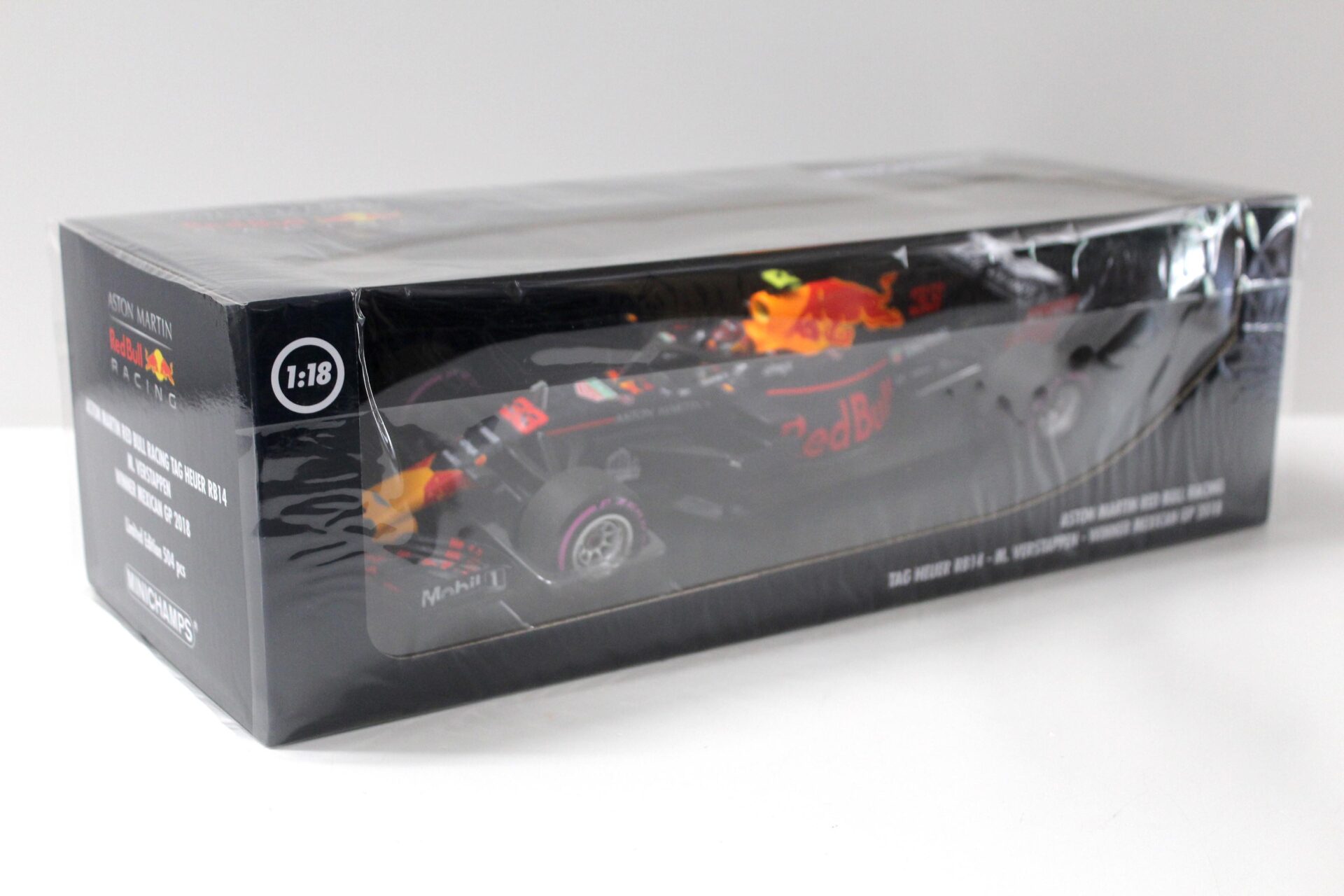 1:18 Minichamps F1 Aston Martin Red Bull Racing RB14 Verstappen Mexican GP 2018